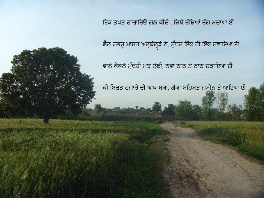 ਇਕ ਤਖਤ ਹਾਜ਼ਾਰਿਓਂ ਗਲ ਕੀਚੇ , ਜਿਥੇ ਰੰਝਿਆਂ ਰੰਗ ਮਚਾਆ ਈ